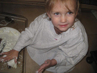 Step 2: Ask Grandpa to tie the yarn on to the pine cones ;)